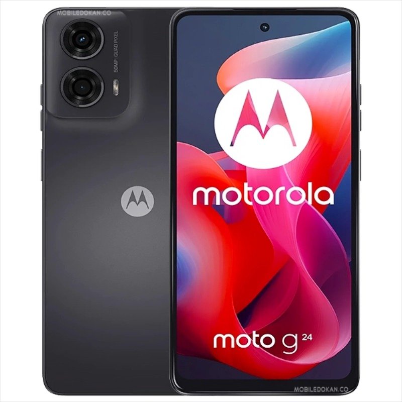 Motorola Moto G24 phone has a dual-camera setup on the back. This formation consists of a 50MP wide, 2MP camera. It has a 8MP selfie camera inside the notch of the display. The video recording capability is 1080p@30fps. According to its RAM and ROM, It has one (4/8GB/128GB) variant. On the other hand, it can support up to microSDXC on using a dedicated slot. Certainly, Moto G24 has a 5000mAh battery with 20W fast charging. It has a dual nano-SIM card slot. That is to say, Moto G24 is 2G/3G/4G supportable. The fingerprint sensor is side-mounted.